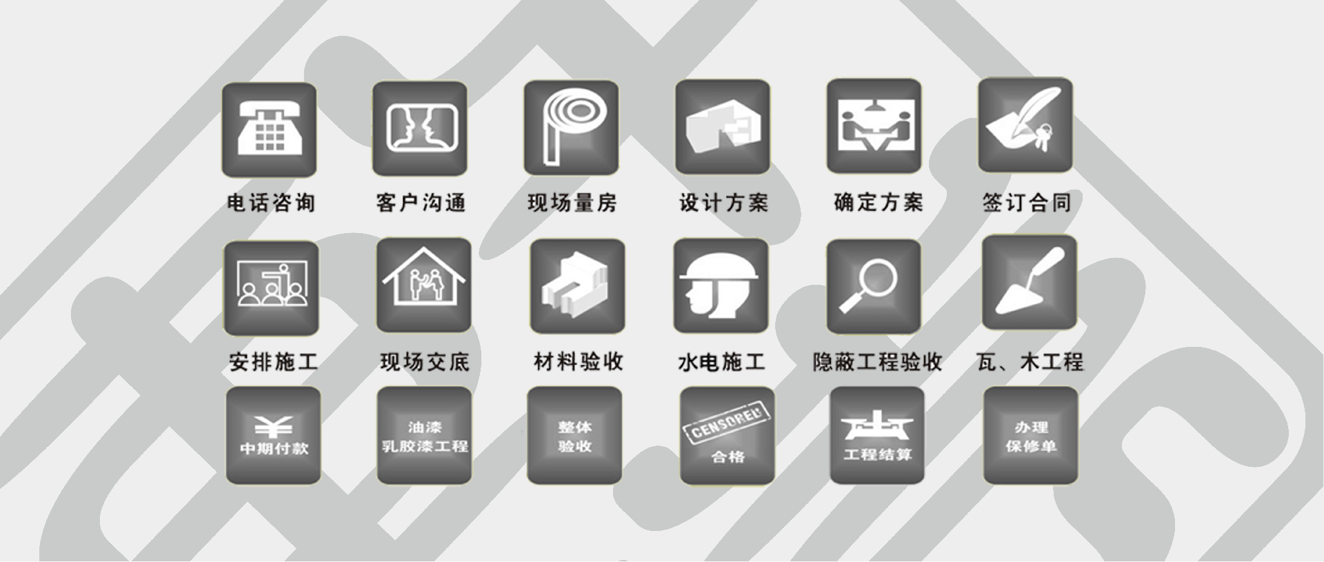 嚴格按照ISO9001-2008質(zhì)量標(biāo)準管理,嚴格選擇國家GB50210環(huán)保標(biāo)準材料...
